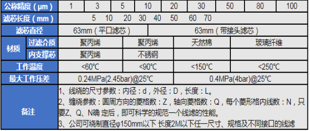【产品简介】:线绕试过滤芯是依据当今技术而生产的换代产品,针对以往线绕滤芯存在的阻力大,寿命短等缺点,采用了的缠绕技术,使用寿命延长两倍左右,从而减少了换芯次数,降低了使用成本。