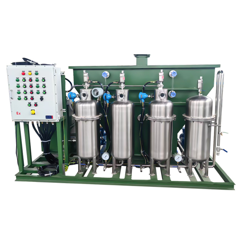 【产品简介】:(一吨)带斜板油水分离设备主要成件说明: 斜板分离器采用两级工艺处理以除去水中的油类和悬浮固体颗粒,污水通过泵打入油水分离器入口,此时流动方向向上,这种初始向上的流动,能够确保水中大部分的游离油(浮油)能够快速上升到分离器的表面。